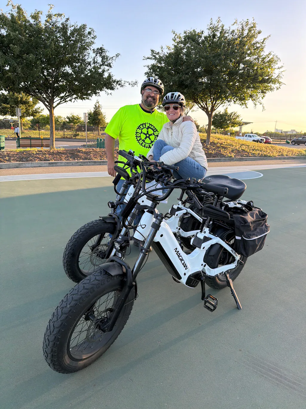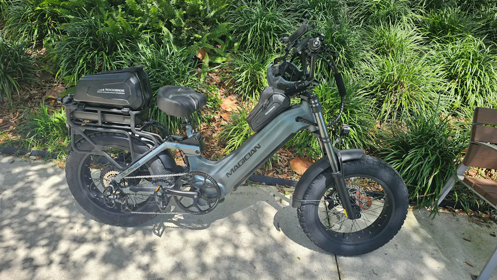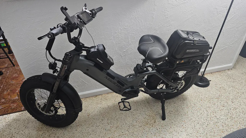 The bike is as advertised! Great ride! Tons of torque and very quiet. The only thing I would tell magician to do different is to put your kick stands on before you ship it out. The cable that is by the back nut is extremely hard to put on for most people. You would be doing everyone a big favor last comment. I’m glad you changed the tire tread pattern. It’s as quiet as the mini.